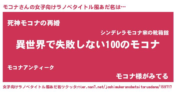 | 意味不明あだ名 | 『永久保存モコナ』『自称モコナ』 |