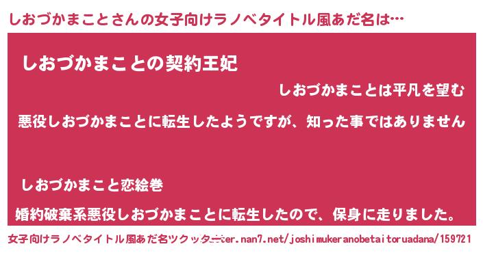 | 男性向けラノベタイトル風あだ名 | 『この素晴らしい世界にしおづかまことを!』 |