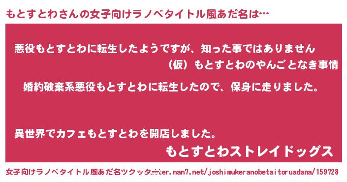 | 男性向けラノベタイトル風あだ名 | 『モトストワスレイヤー』 |