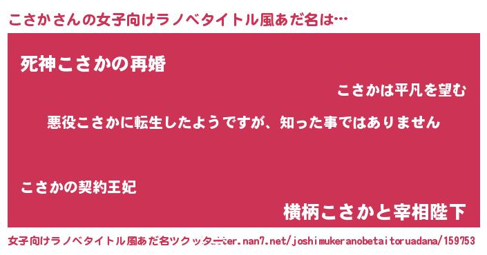 | 男性向けラノベタイトル風あだ名 | 『この素晴らしい世界にこさかを!』 |