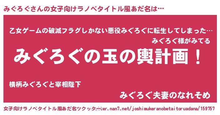 | 男性向けラノベタイトル風あだ名 | 『転生したらみぐろぐだった件』 |