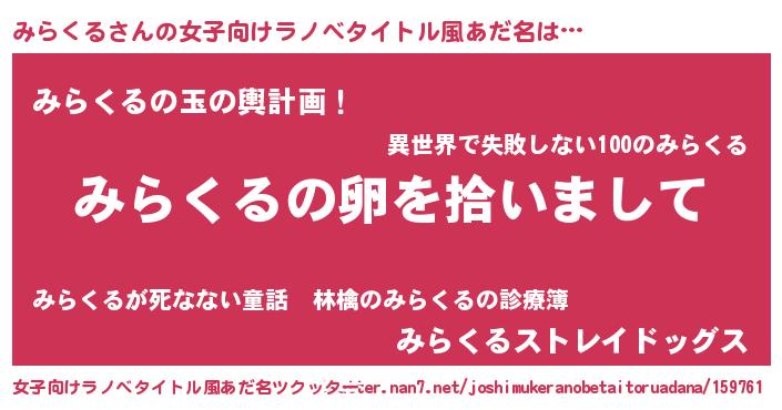 | ヒーロー風カッコイイあだ名 | 『幻影騎士ミラ』『究極戦士ミラクル』 |