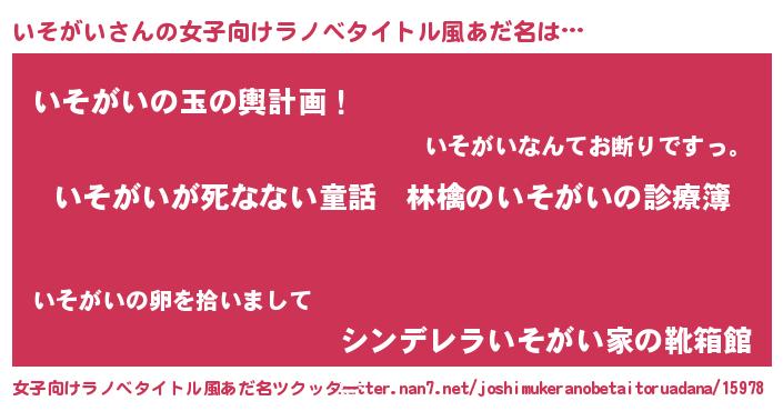 | 胡散臭い通販商品みたいなあだ名 | 『ハリウッド女優が絶賛した100年もののヴィンテージワイン…その名も「いそがい」』 |