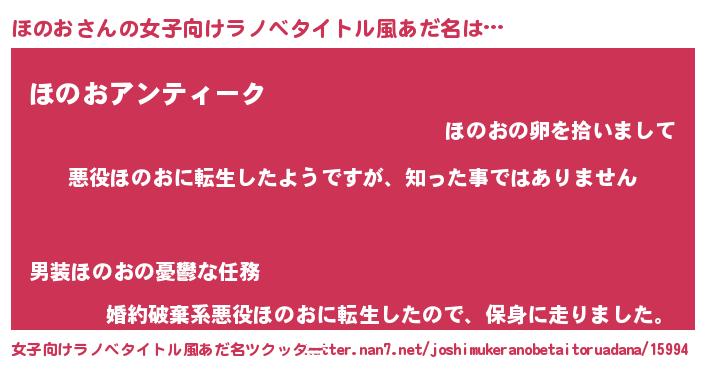 | ファンタジー風あだ名 | 『ヴァルホノーナ』『ゼホノトゥ』 |