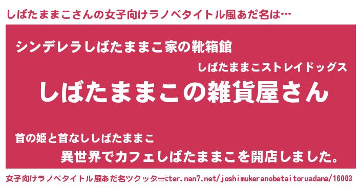 | ファンタジー風あだ名 | 『エターナルシバタママコー』 |
