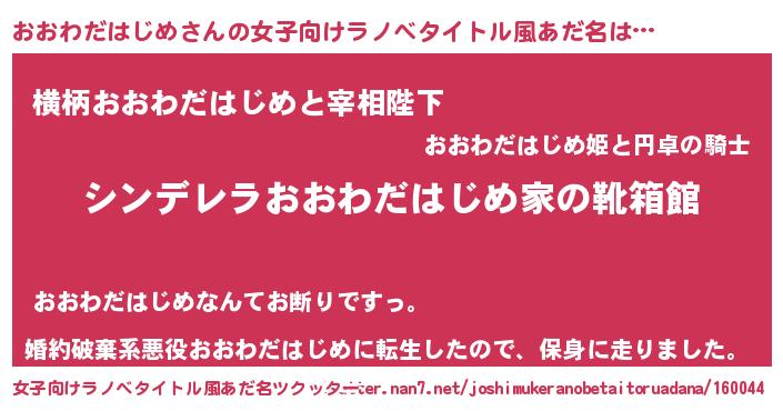 | 男性向けラノベタイトル風あだ名 | 『緋弾のオオワダハジメ』 |
