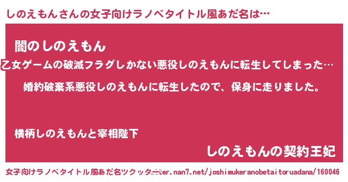 | 男性向けラノベタイトル風あだ名 | 『シノエモンスレイヤー』 |