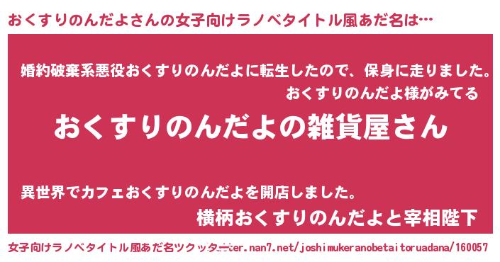 | 男性向けラノベタイトル風あだ名 | 『やはりおくすりのんだよの青春ラブコメはまちがっている 』 |