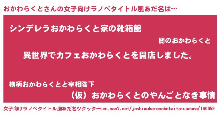 | 意味不明あだ名 | 『永久保存おかわらくと』 |
