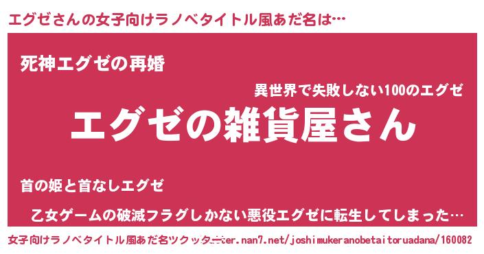 | ヒーロー風カッコイイあだ名 | 『ウルトラエグゼマン』『仮面エグダー』 |