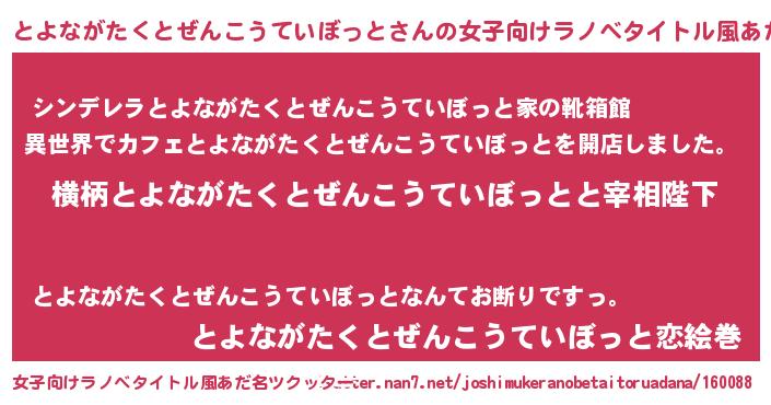 | 男性向けラノベタイトル風あだ名 | 『とよながたくとぜんこうていぼっとに滅ぼされるだけの簡単なお仕事です』 |