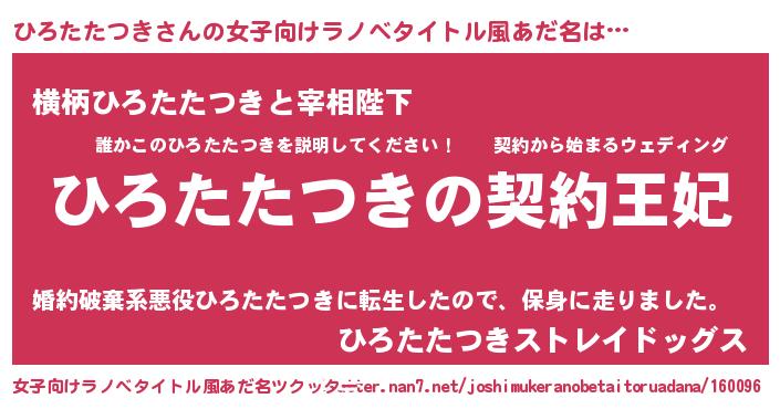 | 胡散臭い通販商品みたいなあだ名 | 『来世でも幸せになれる水素水…その名も「ひろたたつき」』 |
