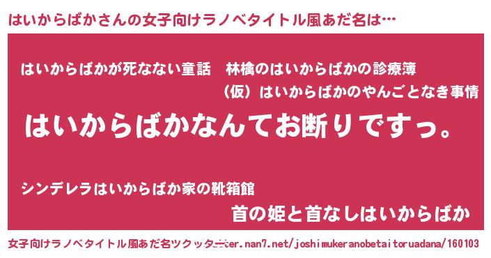| 意味不明あだ名 | 『自称はいからばか』 |