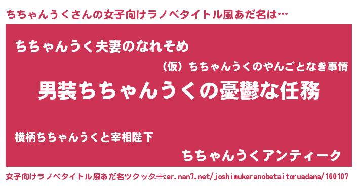| 男性向けラノベタイトル風あだ名 | 『冴えないちちゃんうくの育てかた』 |
