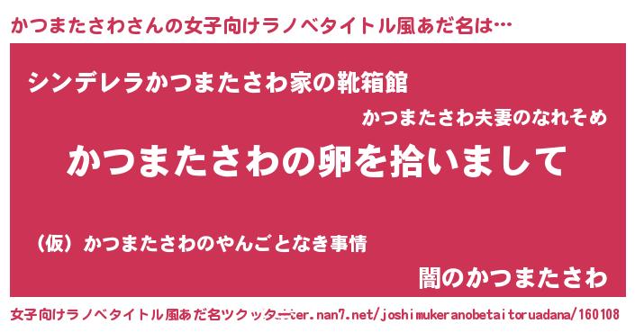 | 胡散臭い通販商品みたいなあだ名 | 『伝統あるサプリメント…その名も「かつまたさわ」』 |