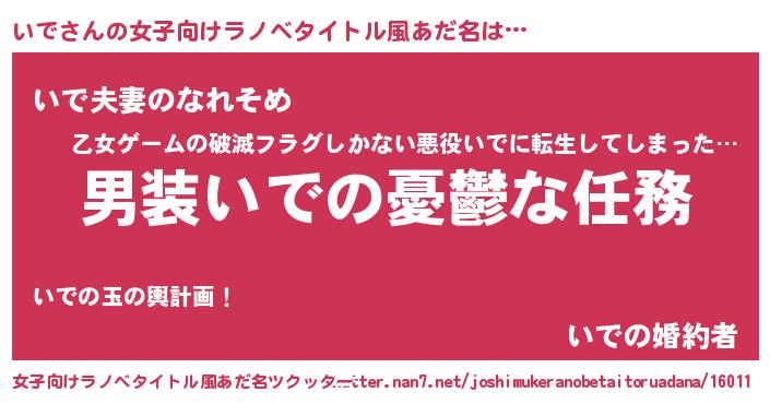 | 男性向けラノベタイトル風あだ名 | 『うちのいでが世界を掌握している!』 |