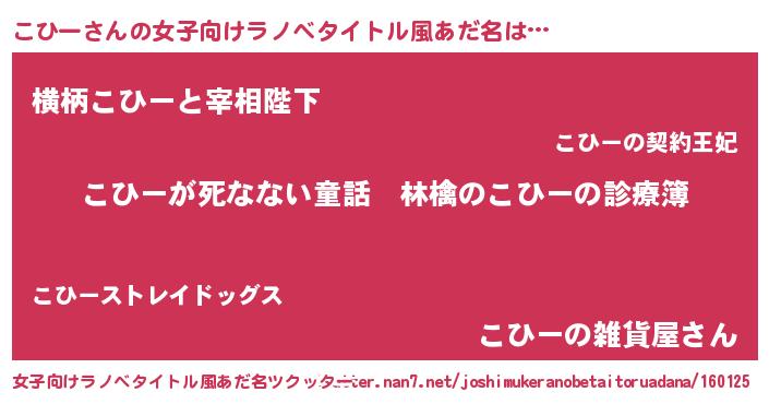 | ヒーロー風カッコイイあだ名 | 『仮面コヒダー』『ウルトラこひーマン』 |