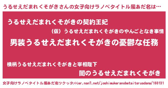| ヘコむあだ名 | 『うるせえだまれくそがき(笑)』『うるお』 |