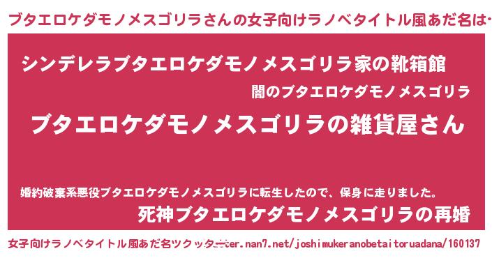 | 男性向けラノベタイトル風あだ名 | 『やはりブタエロケダモノメスゴリラの青春ラブコメはまちがっている 』 |