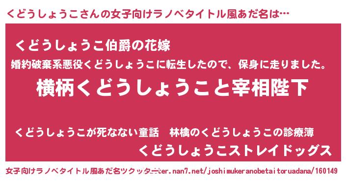 | 胡散臭い通販商品みたいなあだ名 | 『世界が平和になる高級そうな壺…その名も「くどうしょうこ」』 |