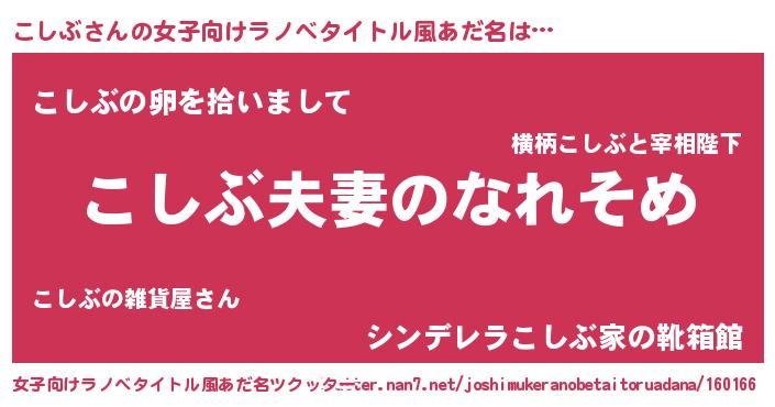 | 男性向けラノベタイトル風あだ名 | 『おまえをオタクにしてやるから、俺をこしぶにしてくれ! 』 |