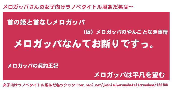 | 意味不明あだ名 | 『自称メロガッパ』『ペロリンメロガッパ』 |