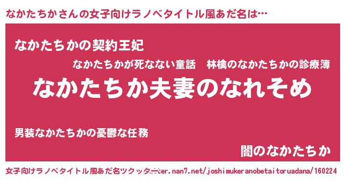 | ヘコむあだ名 | 『なかたちか(小並感)』『なかっちょ』 |