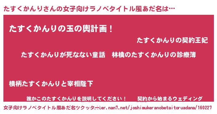 | 意味不明あだ名 | 『住所不定無職たすくかんり(86歳)』 |