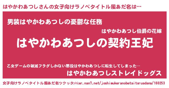 | 意味不明あだ名 | 『永久保存はやかわあつし』 |