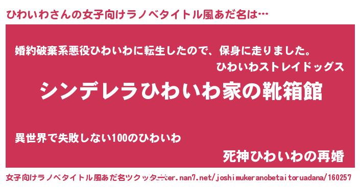 | ヘコむあだ名 | 『ひわいわ(笑)』『牛乳』『ひわを』 |