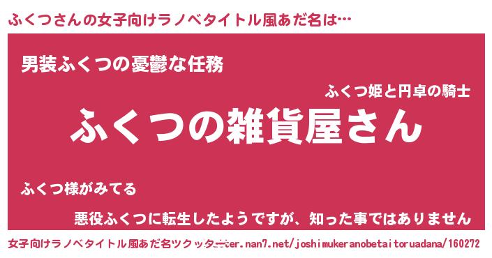 | 男性向けラノベタイトル風あだ名 | 『やはりふくつの青春ラブコメはまちがっている 』 |
