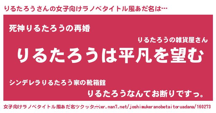 | 男性向けラノベタイトル風あだ名 | 『ダンジョンにりるたろうを求めるのは間違っているだろうか』 |