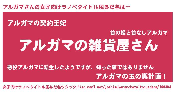 | 男性向けラノベタイトル風あだ名 | 『やはりアルガマの青春ラブコメはまちがっている 』 |