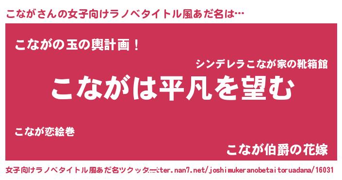 | 意味不明あだ名 | 『とにかく怪しいこなが』『自称こなが』 |