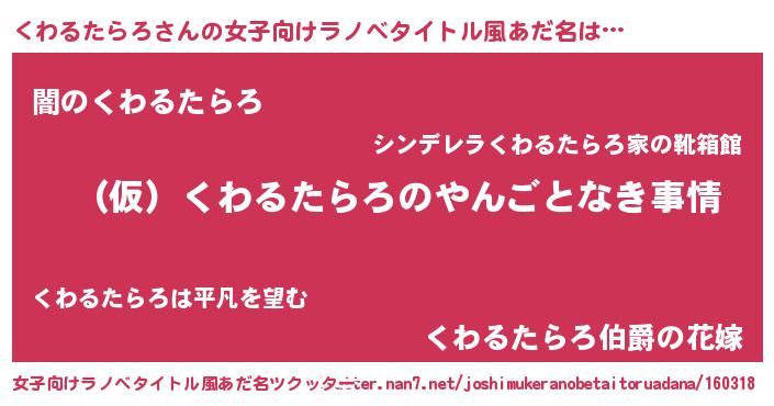 | 男性向けラノベタイトル風あだ名 | 『くわるたらろの憂鬱』 |