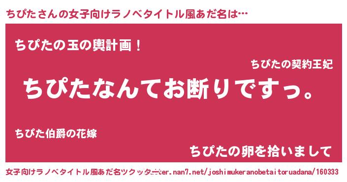 | 男性向けラノベタイトル風あだ名 | 『魔法科高校のちぴた』 |