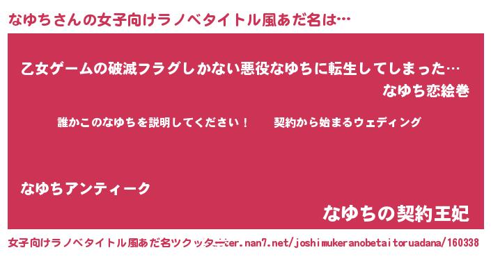 | 胡散臭い通販商品みたいなあだ名 | 『億万長者になれる霊験あらたかなお札…その名も「なゆち」』 |