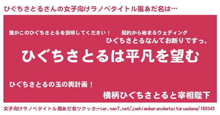 | 男性向けラノベタイトル風あだ名 | 『ダンジョンにひぐちさとるを求めるのは間違っているだろうか』 |