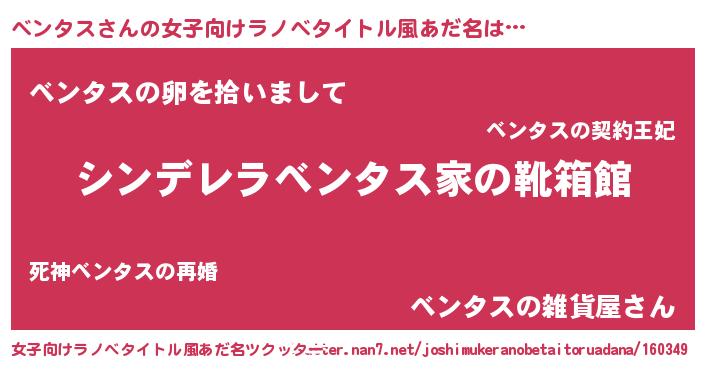 | 男性向けラノベタイトル風あだ名 | 『緋弾のベンタス』 |