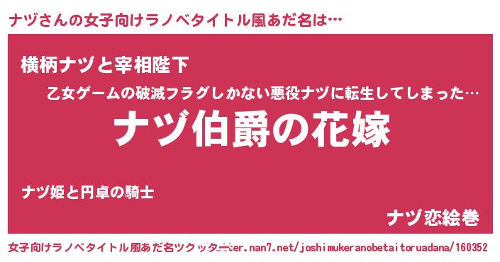 | ヘコむあだ名 | 『豆乳』『ナヅにー』『ナヅ(笑)』 |