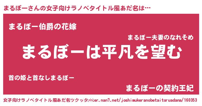 | ヒーロー風カッコイイあだ名 | 『暗黒騎士マル』『ウルトラまるぼーマン』 |