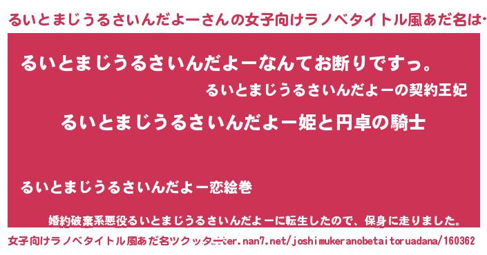 | 男性向けラノベタイトル風あだ名 | 『るいとまじうるさいんだよーの憂鬱』 |