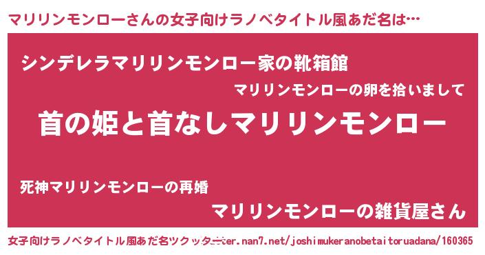 | 男性向けラノベタイトル風あだ名 | 『はたらくマリリンモンローさま!』 |