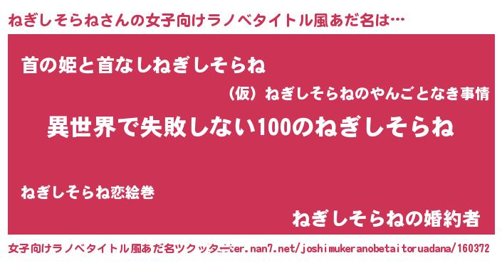 | 胡散臭い通販商品みたいなあだ名 | 『絶対に幸福をもたらす水素水…その名も「ねぎしそらね」』 |
