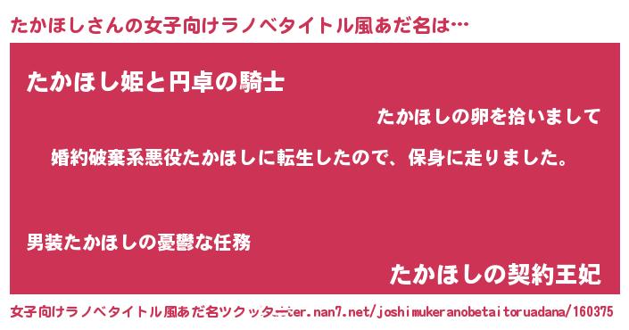 | ファンタジー風あだ名 | 『ユリタカヴァット』『タカフェル』 |