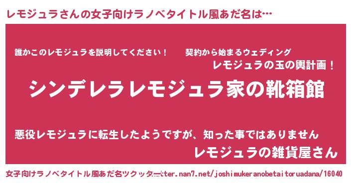| 男性向けラノベタイトル風あだ名 | 『冴えないレモジュラの育てかた』 |