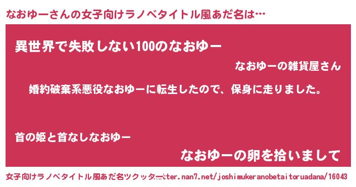 | 男性向けラノベタイトル風あだ名 | 『転生したらなおゆーだった件』 |