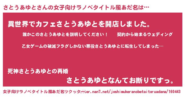 | 男性向けラノベタイトル風あだ名 | 『魔弾の王とさとうあゆと』 |