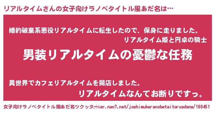 | 男性向けラノベタイトル風あだ名 | 『うちのリアルタイムが世界を掌握している!』 |