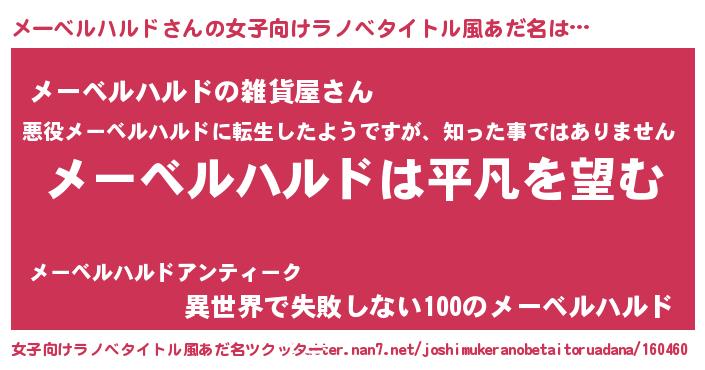 | 胡散臭い通販商品みたいなあだ名 | 『信頼と実績のネックレス…その名も「メーベルハルド」』 |